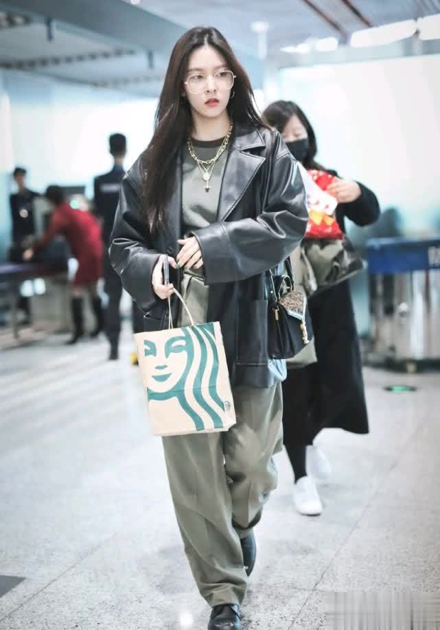 其实宋妍霏的机场穿搭都是比较简单的类型,穿起来舒服又好看,也不失时尚感。最后的这一身穿搭多了几分帅气,一件黑色的皮衣搭配宽松的西装裤,有一种混搭风。身上的项链和眼镜增添了几分时尚的元素,整体效果还是挺不错的,很符合她的年龄和气质,穿出了不一样的魅力。